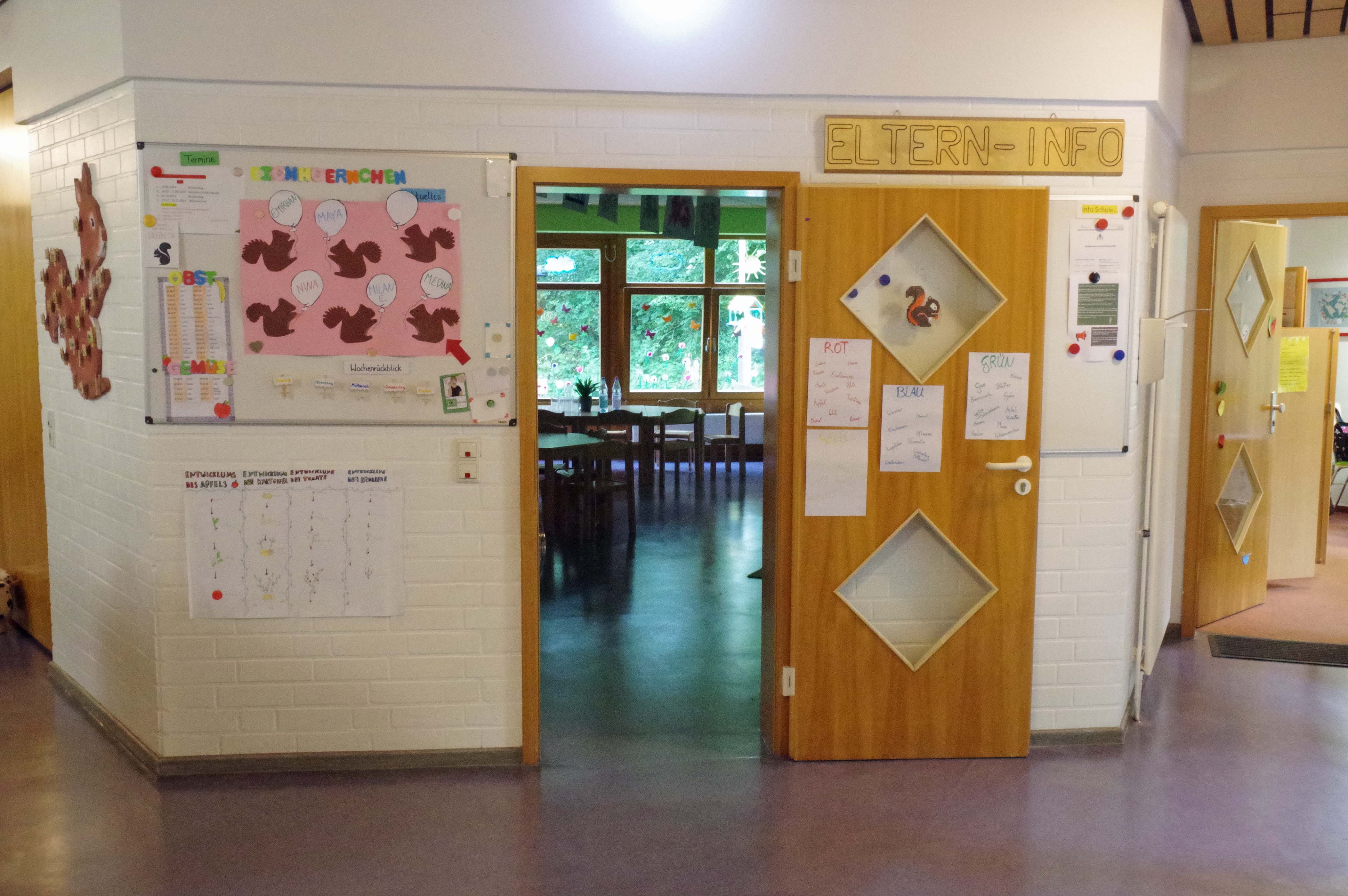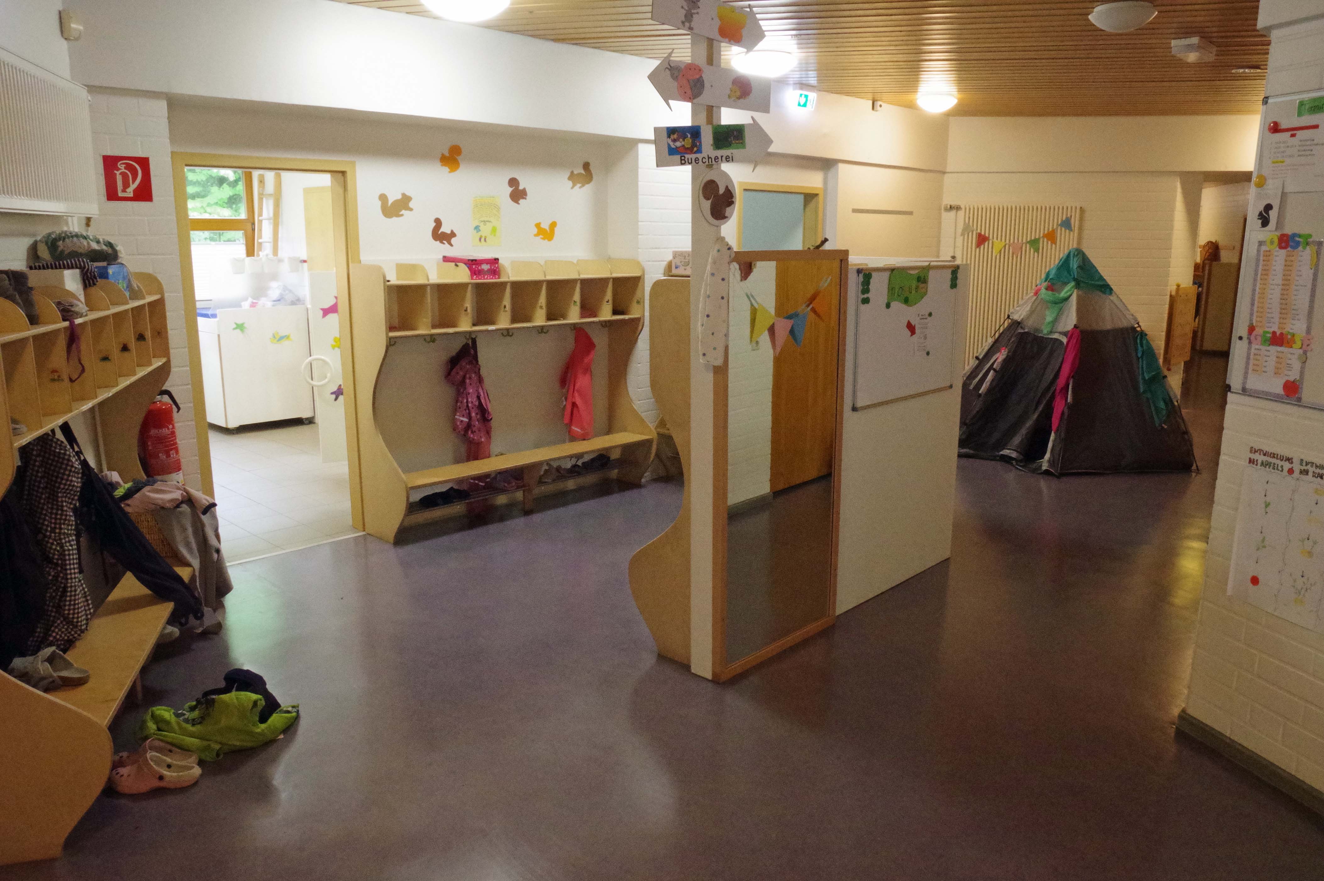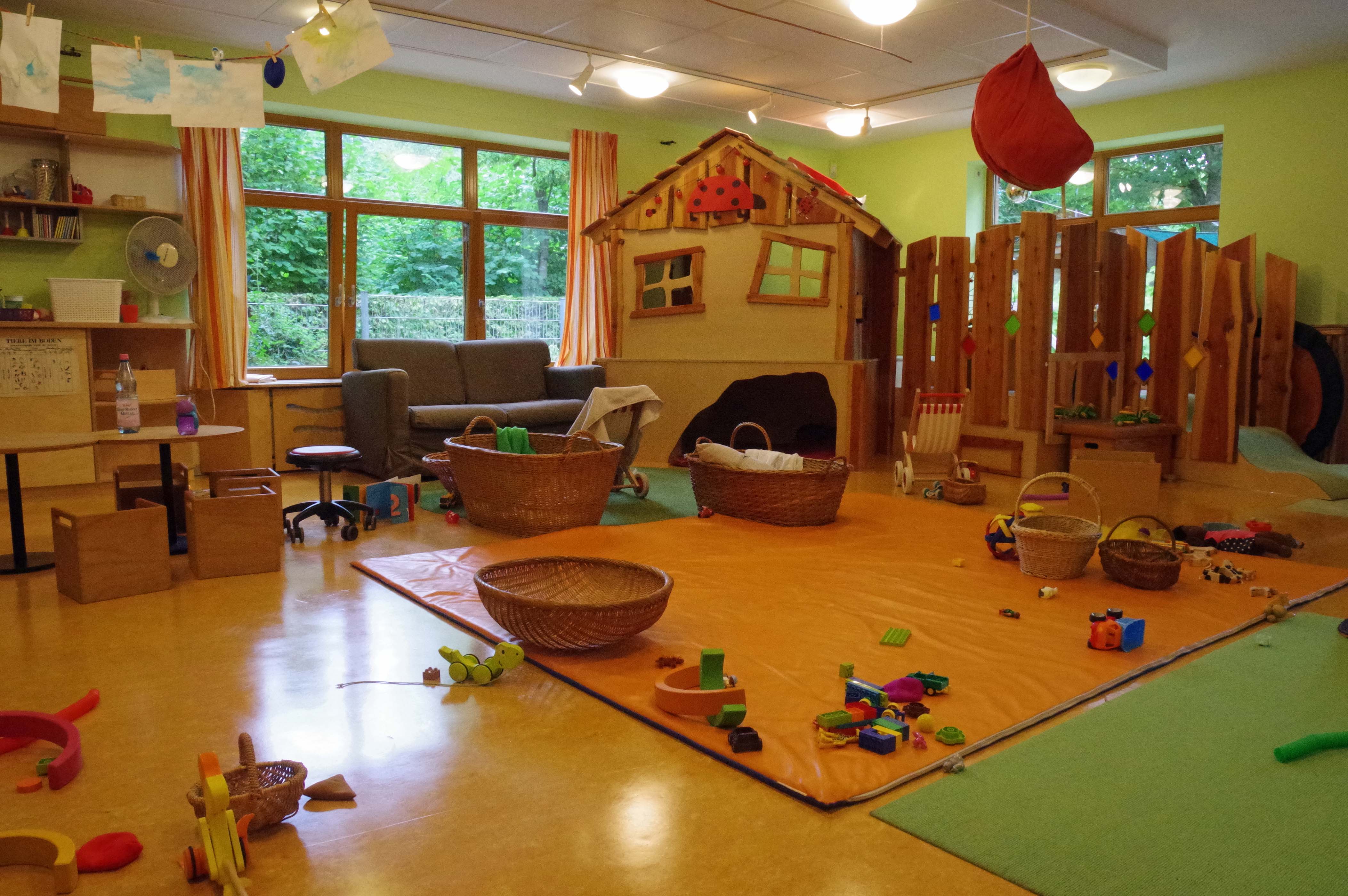 Vier Elementargruppen mit bis zu 22 Kindern altersübergreifend von 3-6 Jahren sowie eine Krippengruppe mit bis zu 10 Kindern im Alter von 1-3 Jahren.