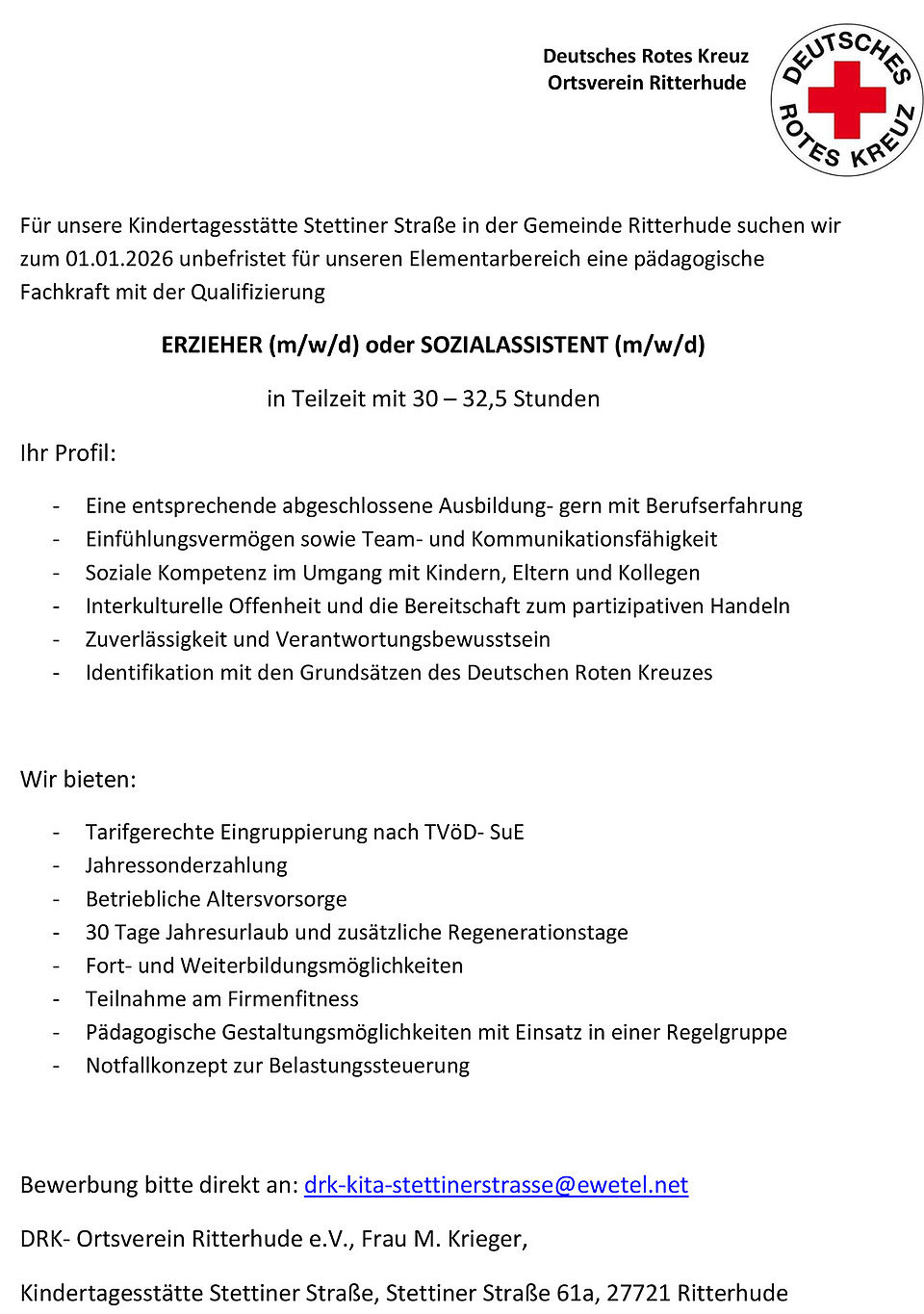 Der DRK-Ortsverein Ritterhude e.V. ist eine engagierte, rein ehrenamtliche Gemeinschaft von Bürgerinnen und Bürgern mit vielen Angeboten für Jung und Alt.